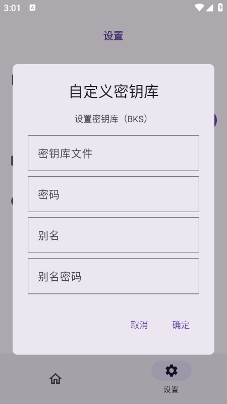 输入自定义密钥库信息 :上传密钥库文件 ,